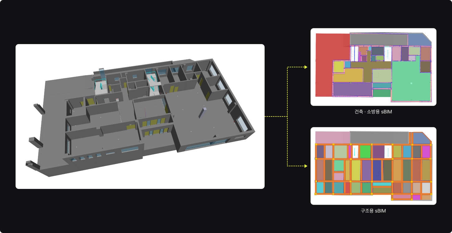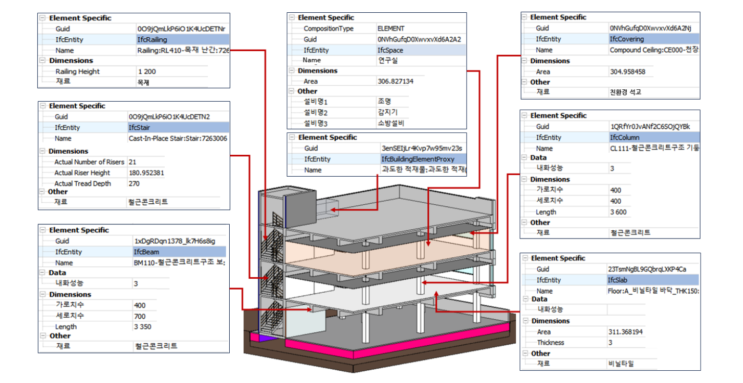 건물의 구조․화재 안전관리에 필요한 안전정보만 수록한 저용량의 경량 3D BIM 형상정보만 모델링 되고, 기타 정보는 디지털화된 속성정보(text)로 제공하는 BIL20∼30 수준의 모델
